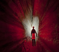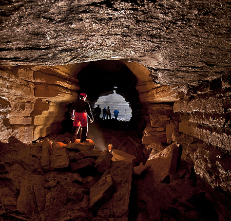 Minnesota. Larry Edwards is standing in a subterranean chamber, his headlamp