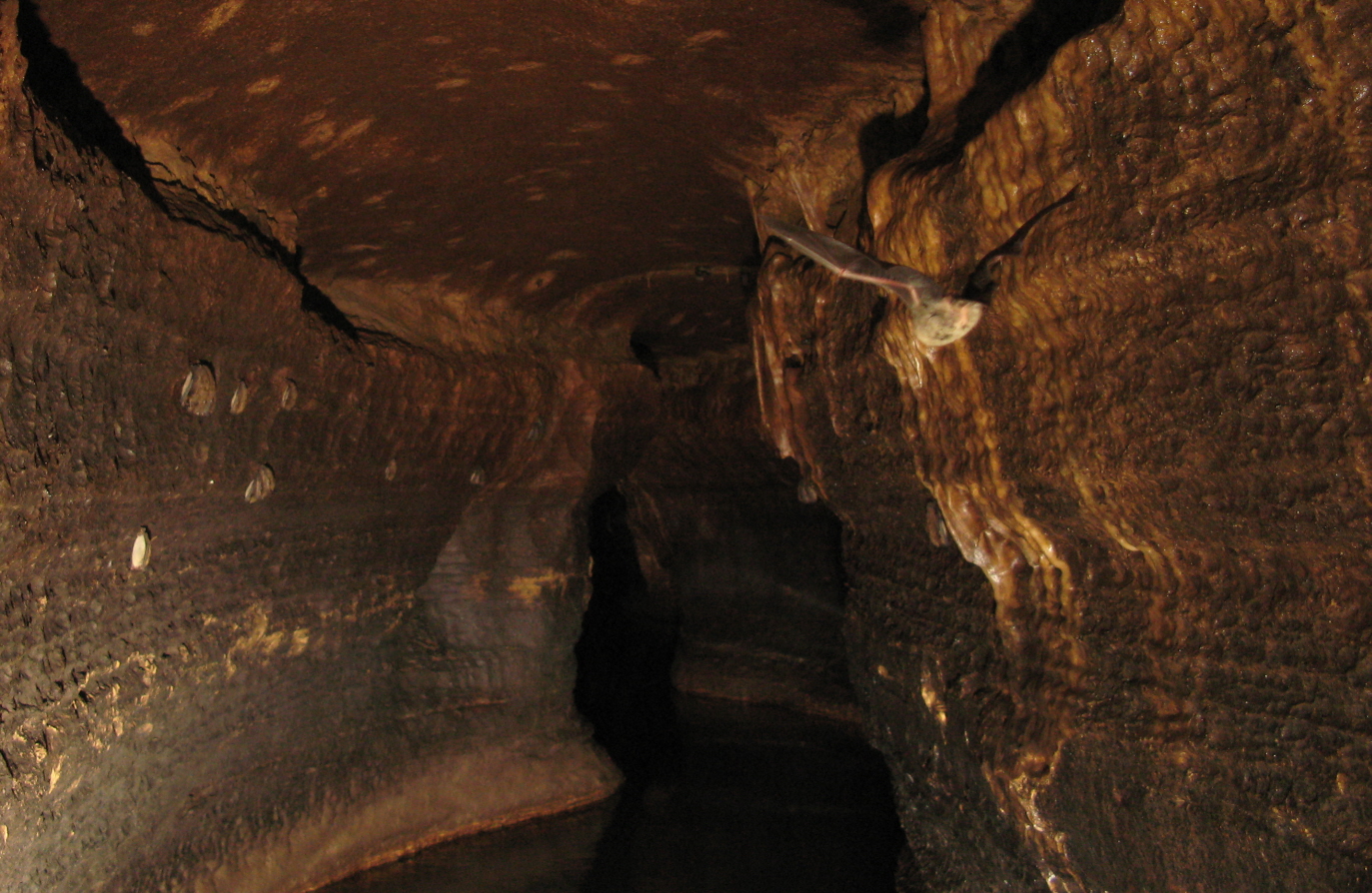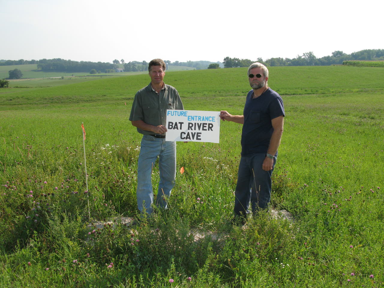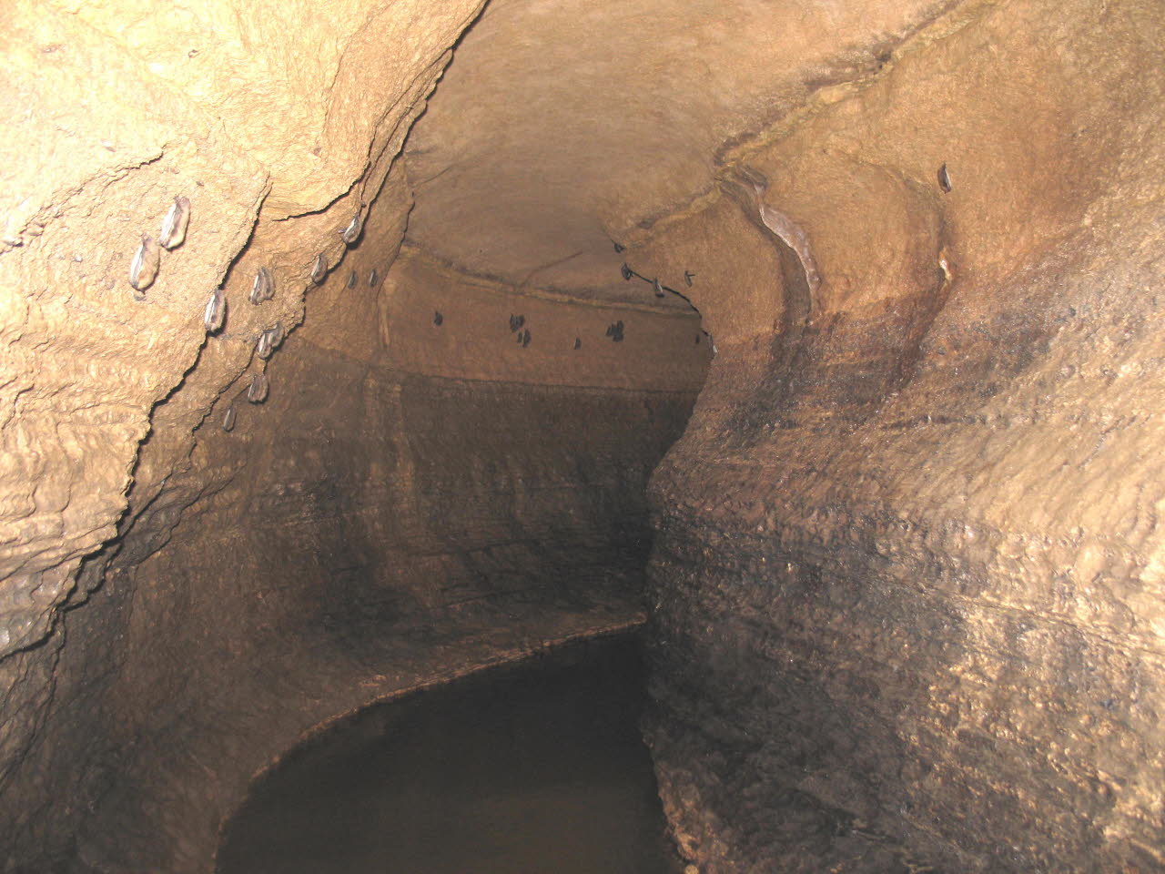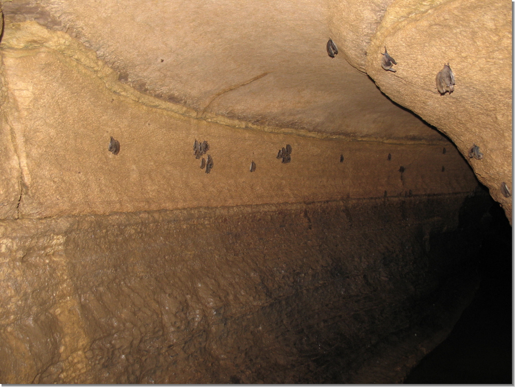 Bat River Cave, located in S.E. Minnesota, was home to the largest concentration of roosting bats (in any natural cave) in the Upper Midwest before White Nose Syndrome disease desecrated the population. The original portion of this cave has been known to exist since pre settlement times. However, in 2007 John Preston, outfitted with SCUBA gear, dove through a water filled sump at the end of the cave and discovered a huge room with a tremendous waterfall crashing down into it. He reported that the cave continued ahead, and shortly thereafter John Ackerman and Phil Gemuenden followed Preston through the sump and explored over one mile of spacious decorated passages lined with bats. A safe man made entrance has now been created to further exploration and scientific studies. To date, 2.84 miles of cave passages have been explored. Read the STORY View the MAP Read the HISTORY |