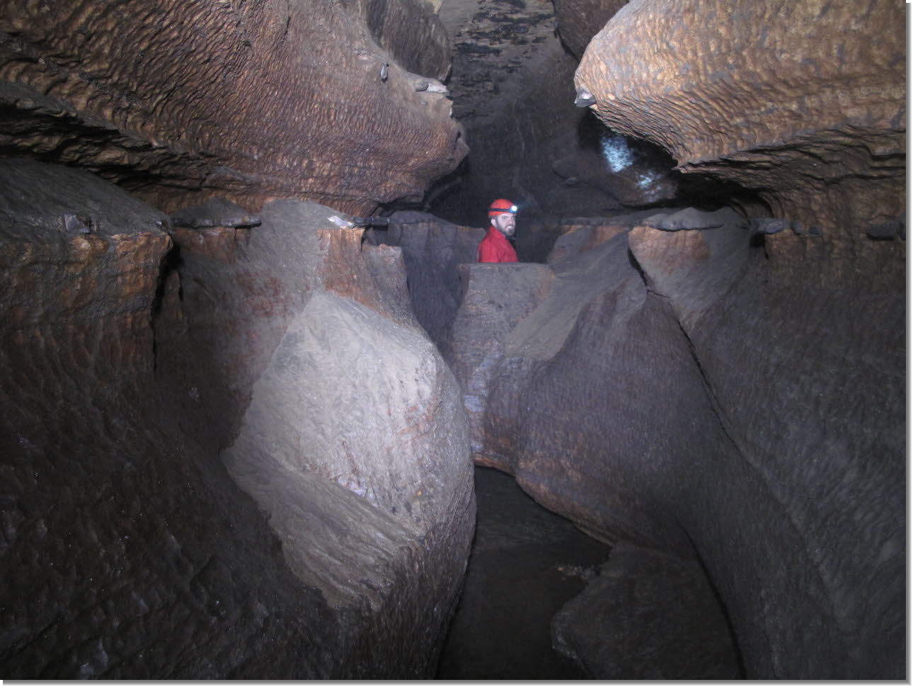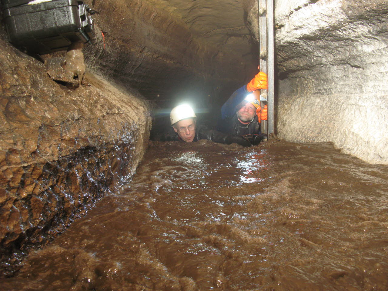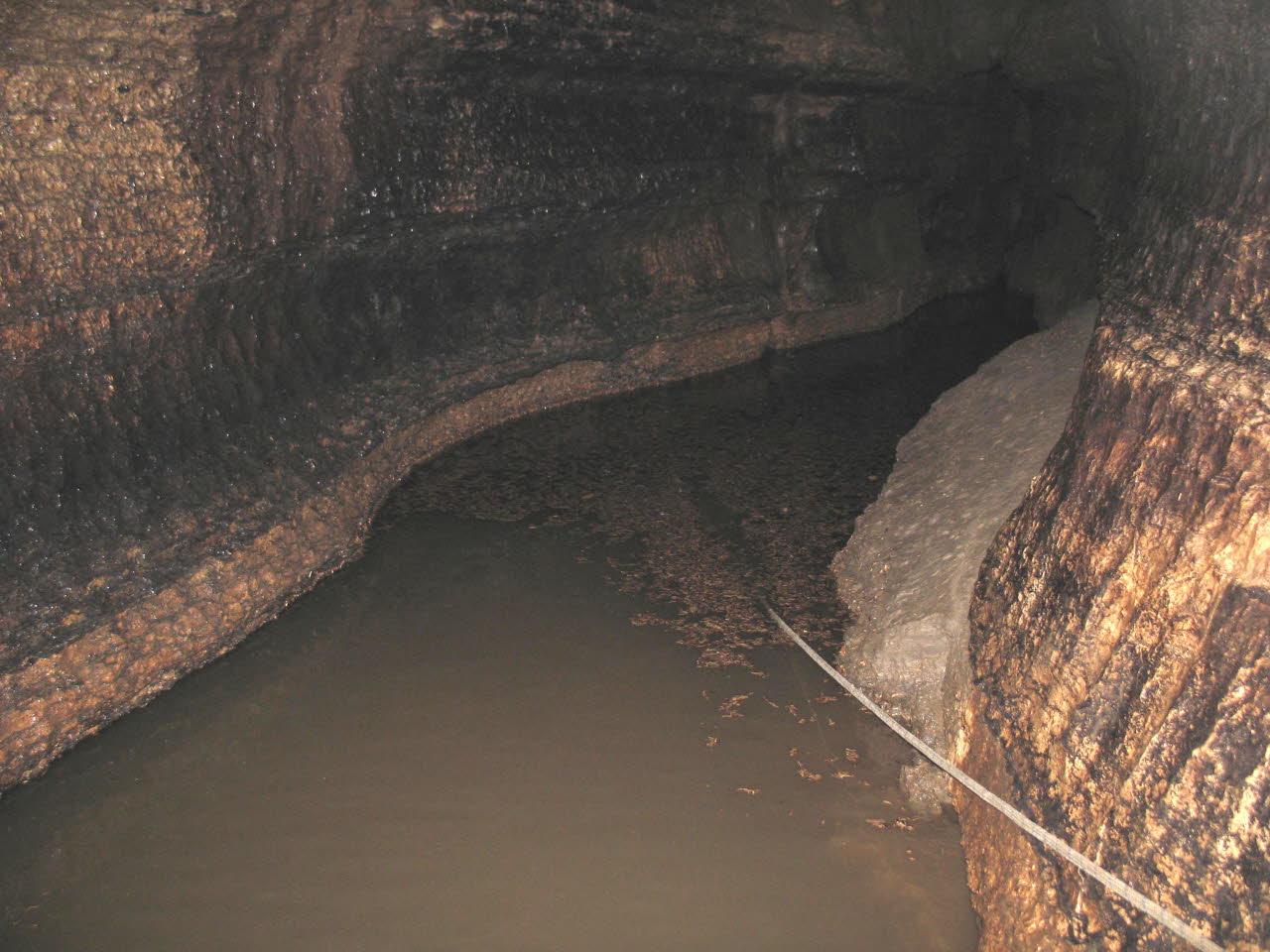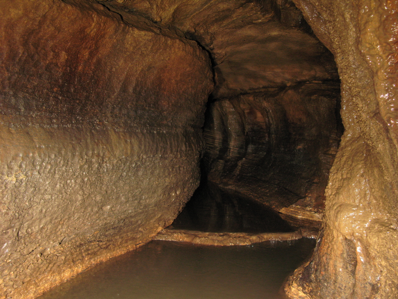 Bat River Cave, located in S.E. Minnesota, was home to the largest concentration of roosting bats (in any natural cave) in the Upper Midwest before White Nose Syndrome disease desecrated the population. The original portion of this cave has been known to exist since pre settlement times. However, in 2007 John Preston, outfitted with SCUBA gear, dove through a water filled sump at the end of the cave and discovered a huge room with a tremendous waterfall crashing down into it. He reported that the cave continued ahead, and shortly thereafter John Ackerman and Phil Gemuenden followed Preston through the sump and explored over one mile of spacious decorated passages lined with bats. A safe man made entrance has now been created to further exploration and scientific studies. To date, 2.84 miles of cave passages have been explored. Read the STORY View the MAP Read the HISTORY |