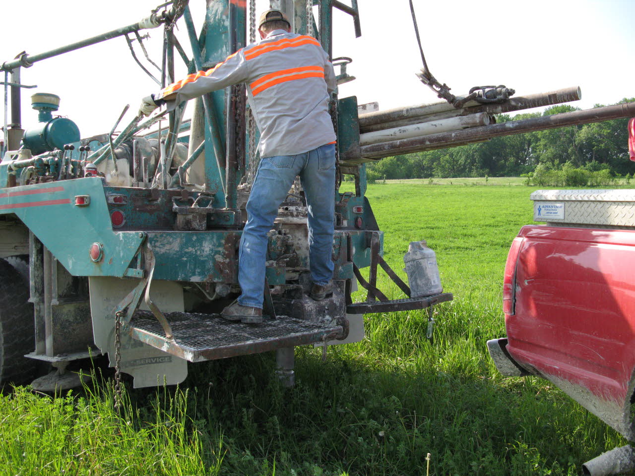 specialty rig prepares to remove dirt and loose rock until solid bedrock