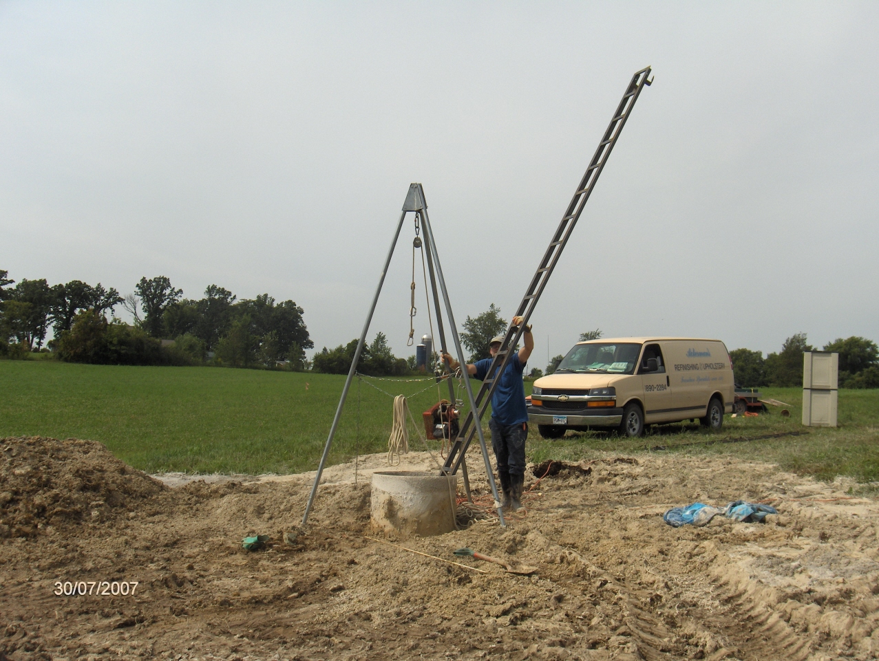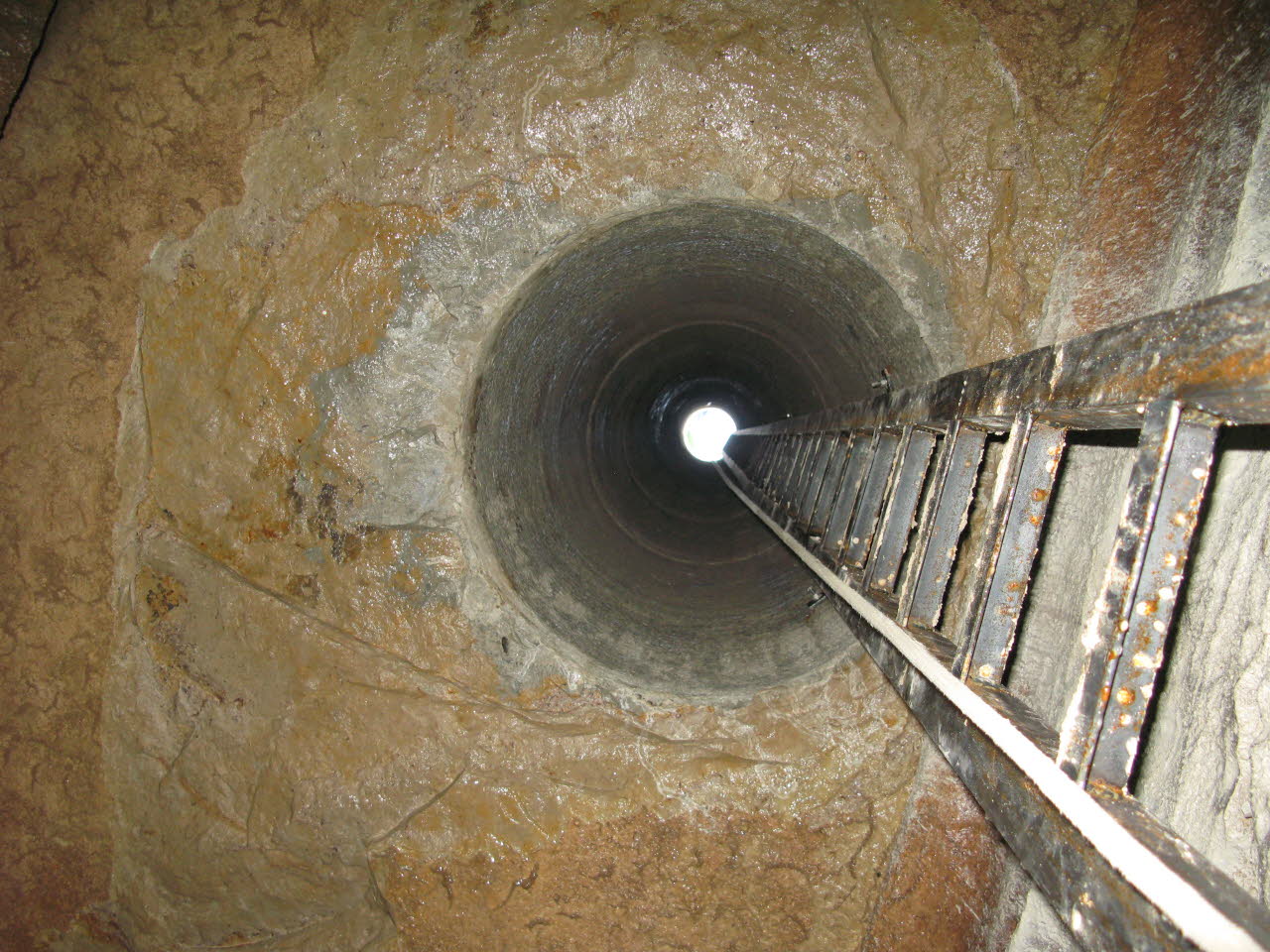 main 30” diameter shaft down to the cave ceiling, which is 57’ below the