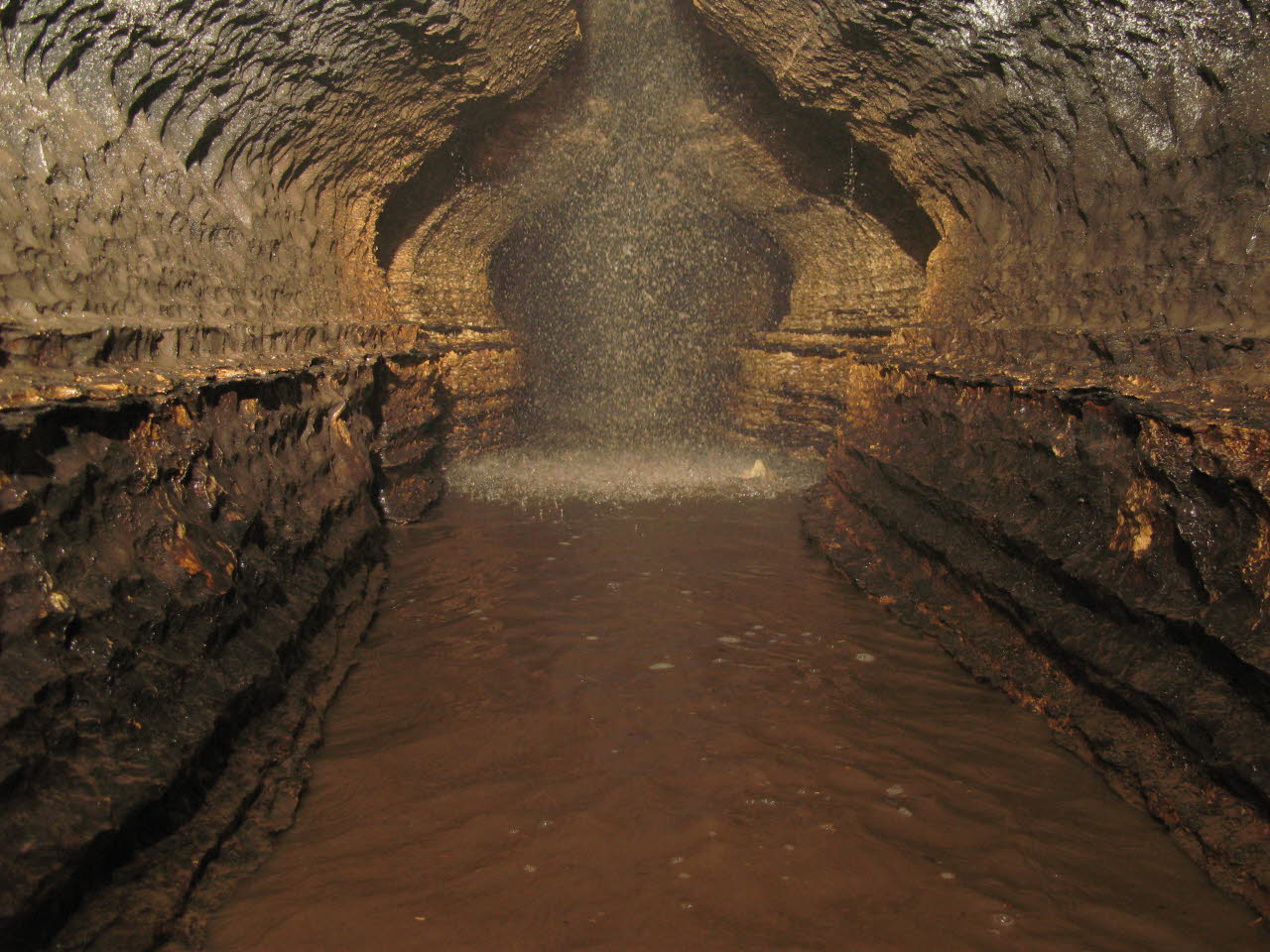 p.m. We encounter a fantastic waterfall where only a dry ceiling existed before. |