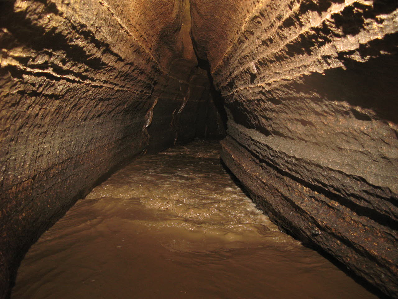 p.m. The water begins to rise and becomes turbulent. Even though the main passage is spacious we decide to abort the tour. |