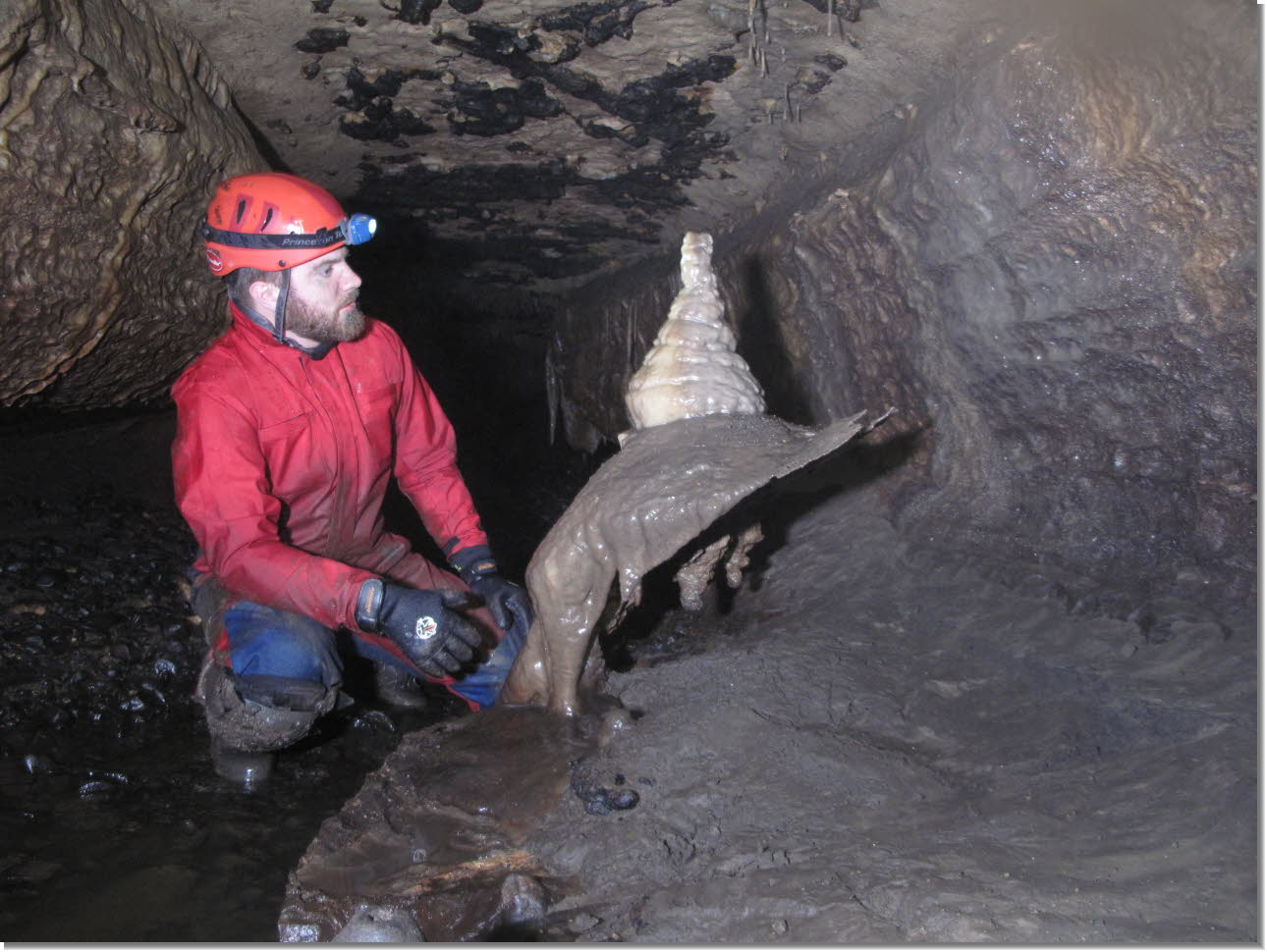 In 2008-9 over 175 rare bones dating back to the ice age were discovered along some of the stream banks in Bat River Cave and nearby Tyson Spring Cave. Read the account |