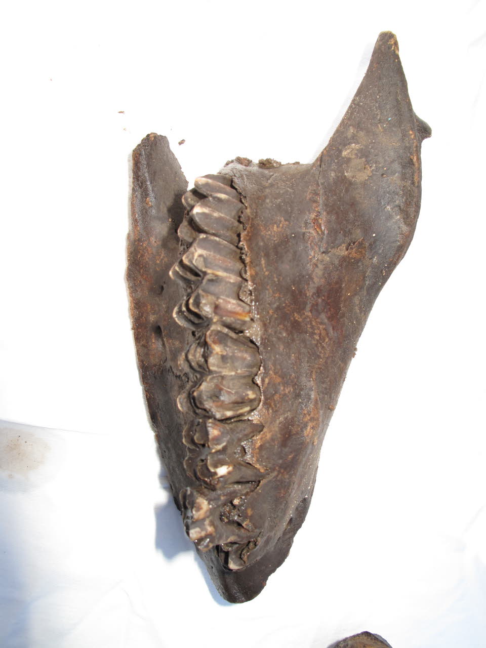 Thought to be the upper right jaw of an extinct bison. Tests are ongoing. |