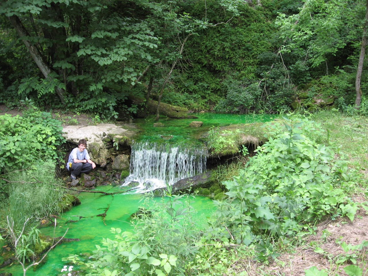 This is a bird’s eye view of an average sinkhole in S.E. Minnesota. Trees sprout up along the perimeters and farmers simply farm around them. This sinkhole is about 20’ deep. |