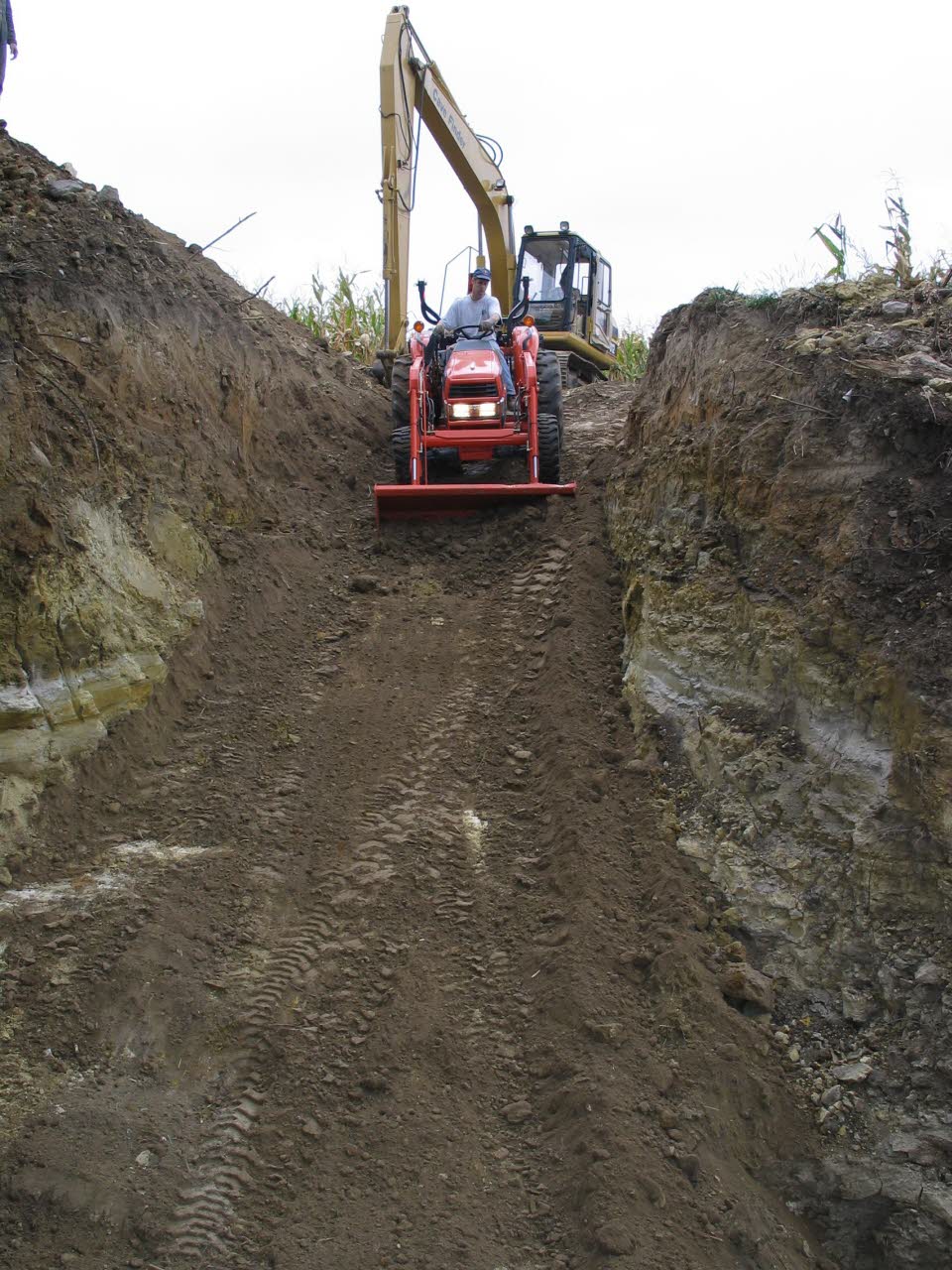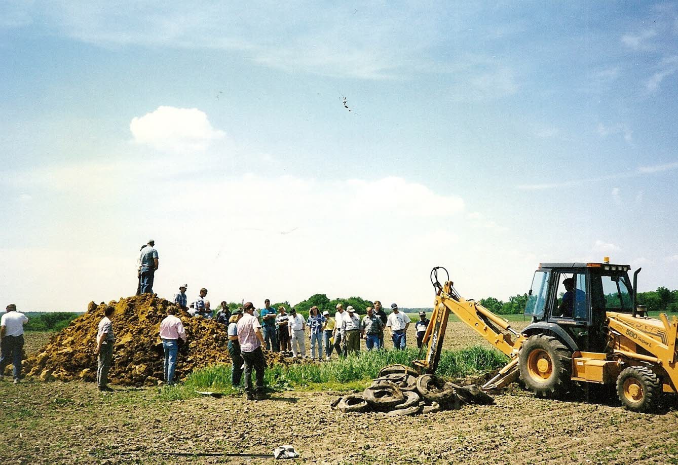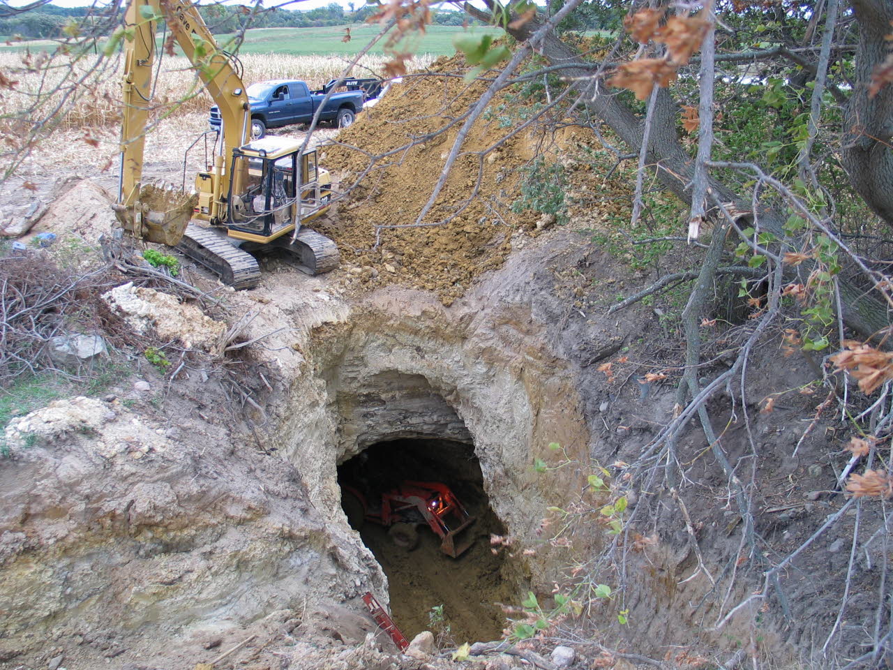 In order to facilitate the removal of sediment (carried in by the last glacier deposits and modern day field erosion) Phil Gemuenden’s tractor was lowered down into the sinkhole. |