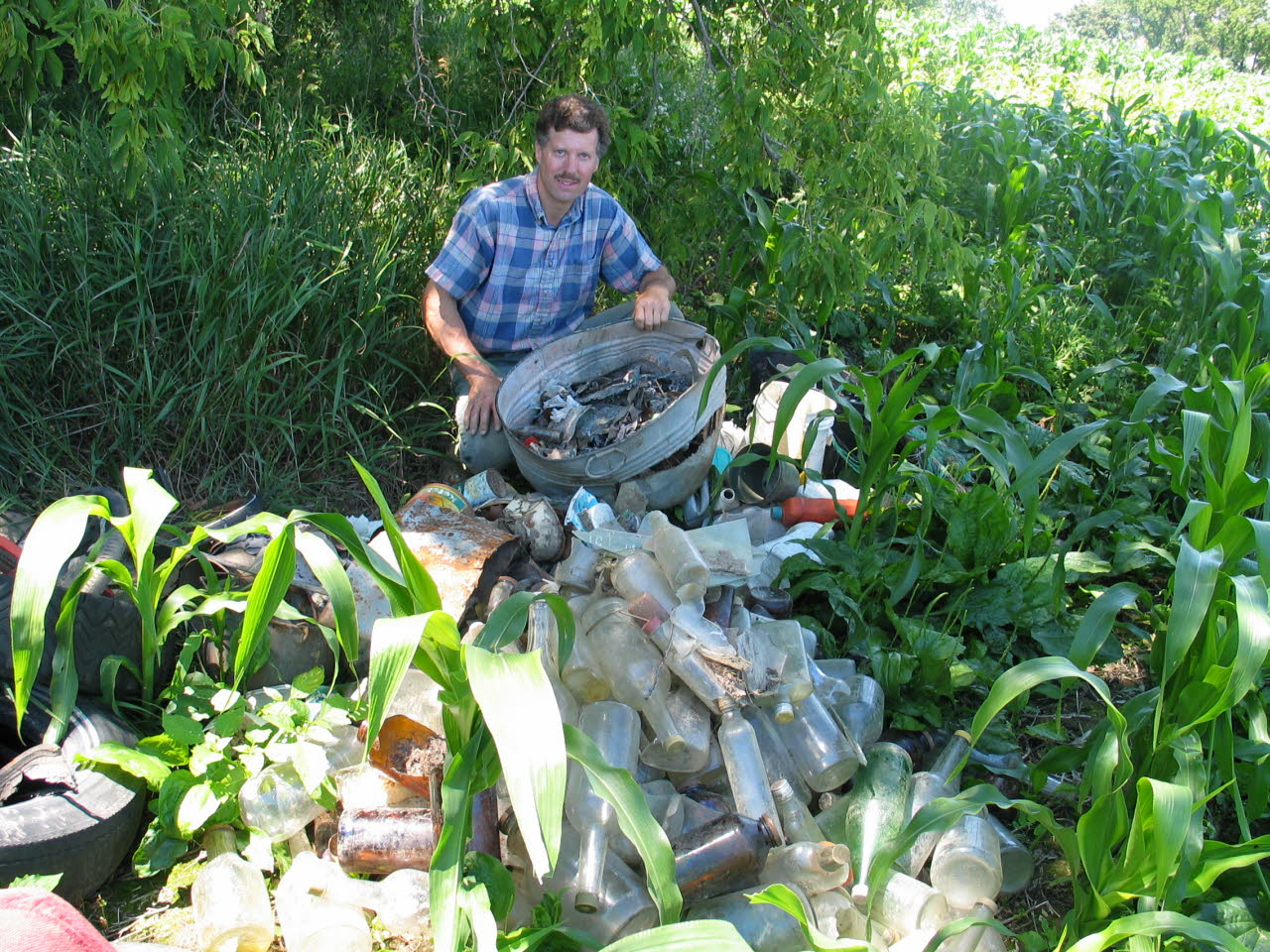 Bottles and assorted debris was removed before the project began. Like most sinkholes, this one was used as a dump by the original landowner. |