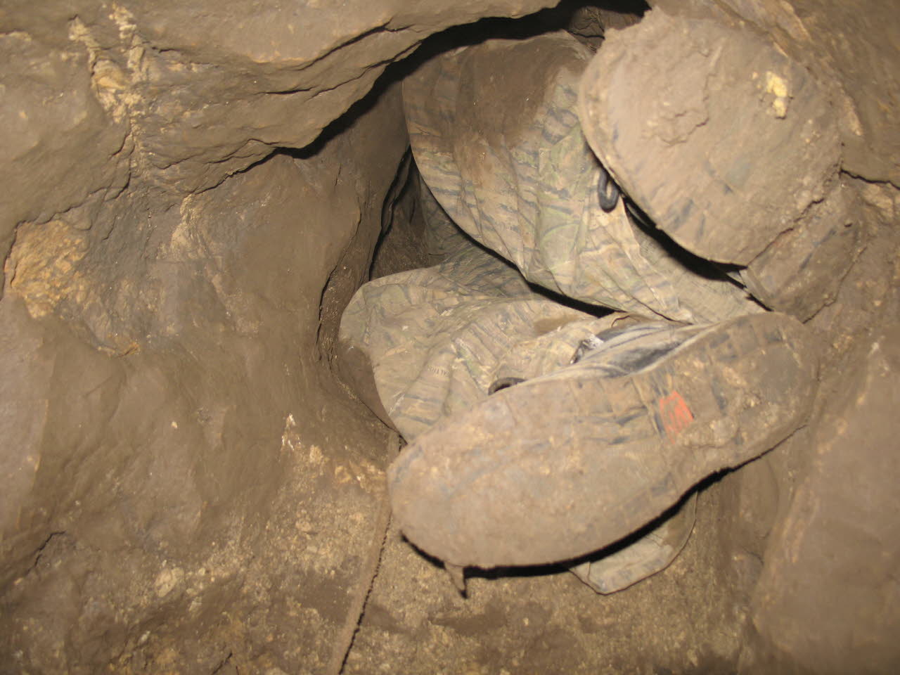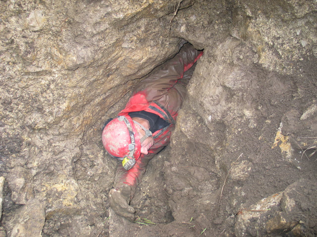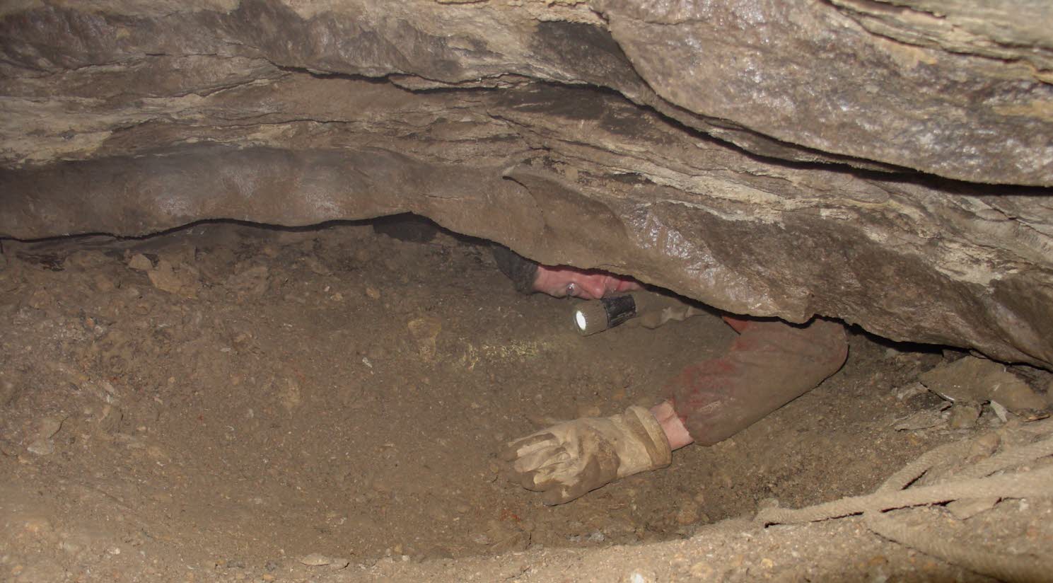 Dave Gerboth pushes forward in Corn Pit Cave. Photo taken in 2005. |