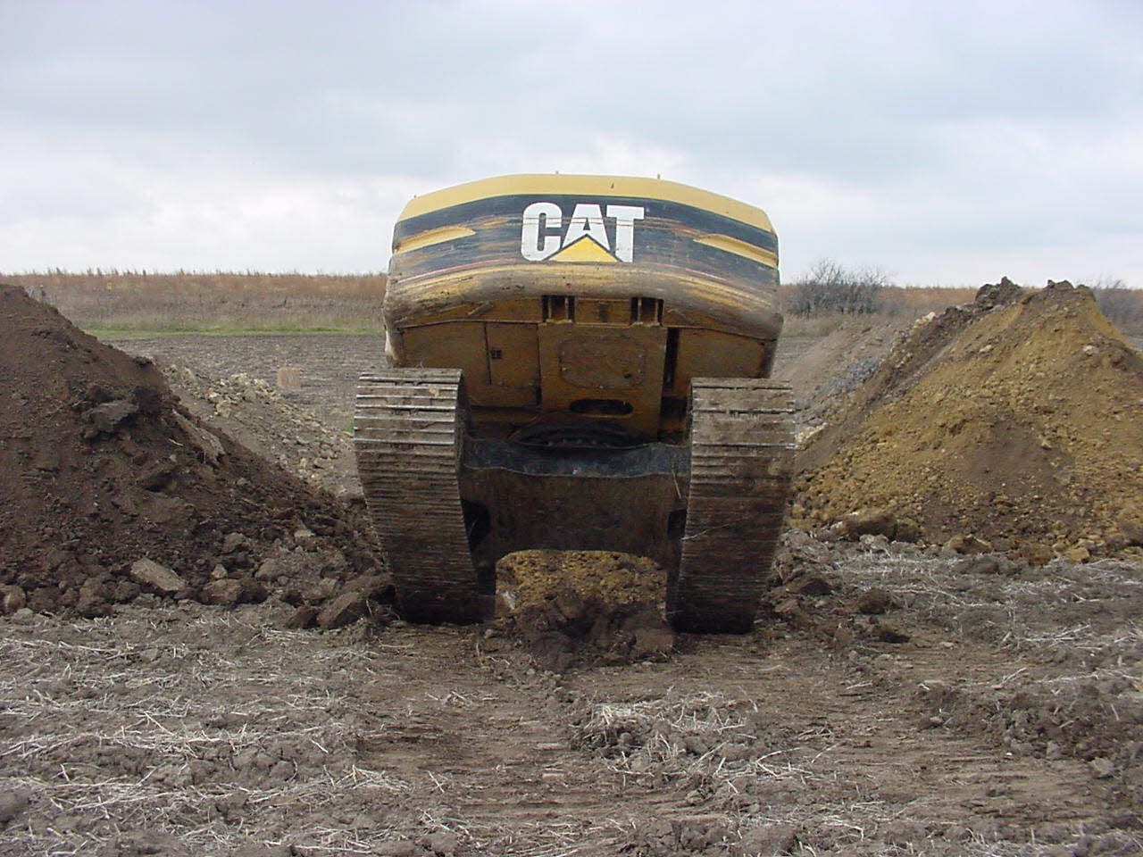 Excavating sinkholes is not as easy as it may appear. Occasionally water may leach from the newly exposed sides and flow into the immediate digging area. In this case the Cave Finder became hopelessly mired in muck and had to be pulled out by huge machinery. |