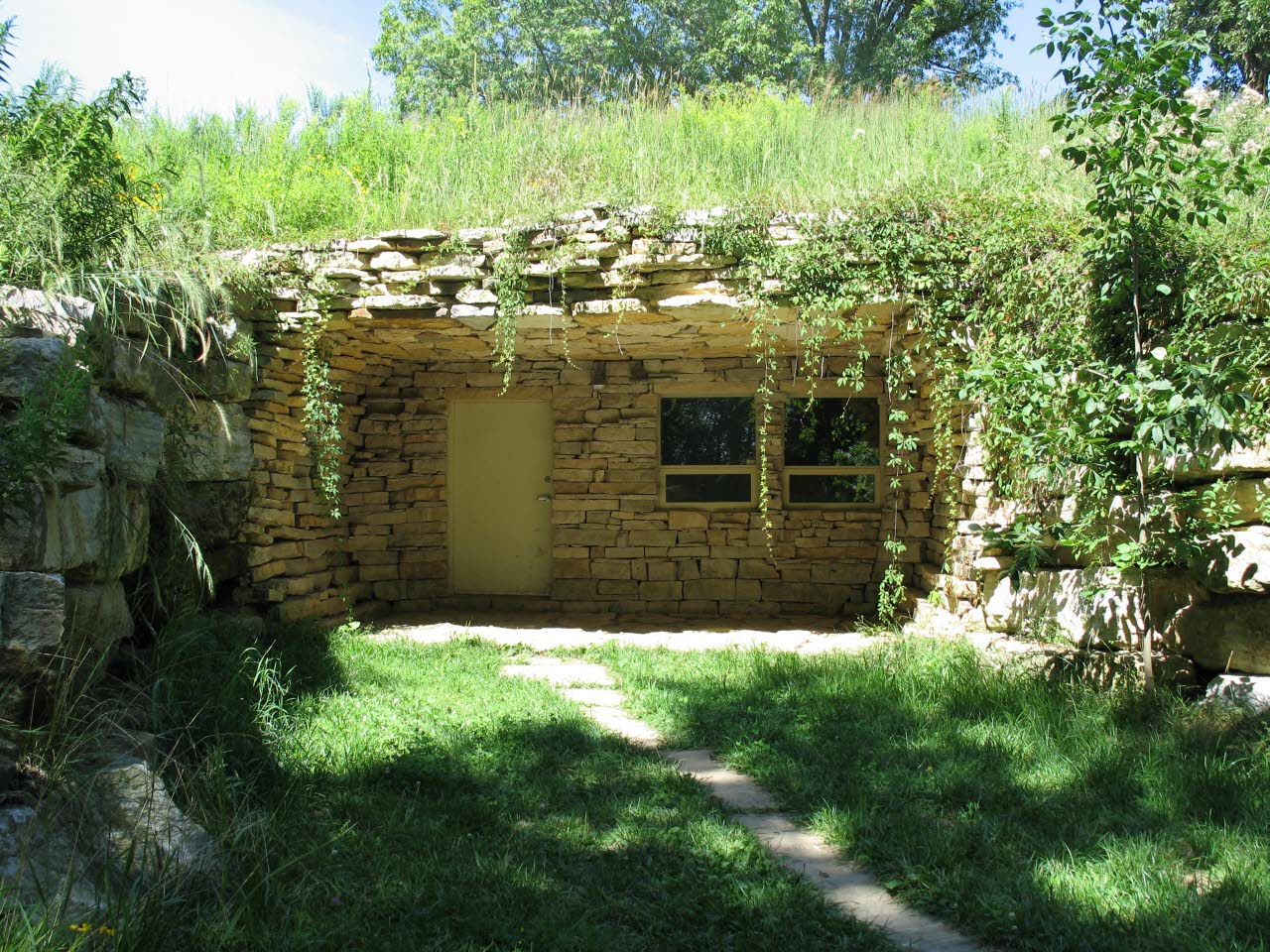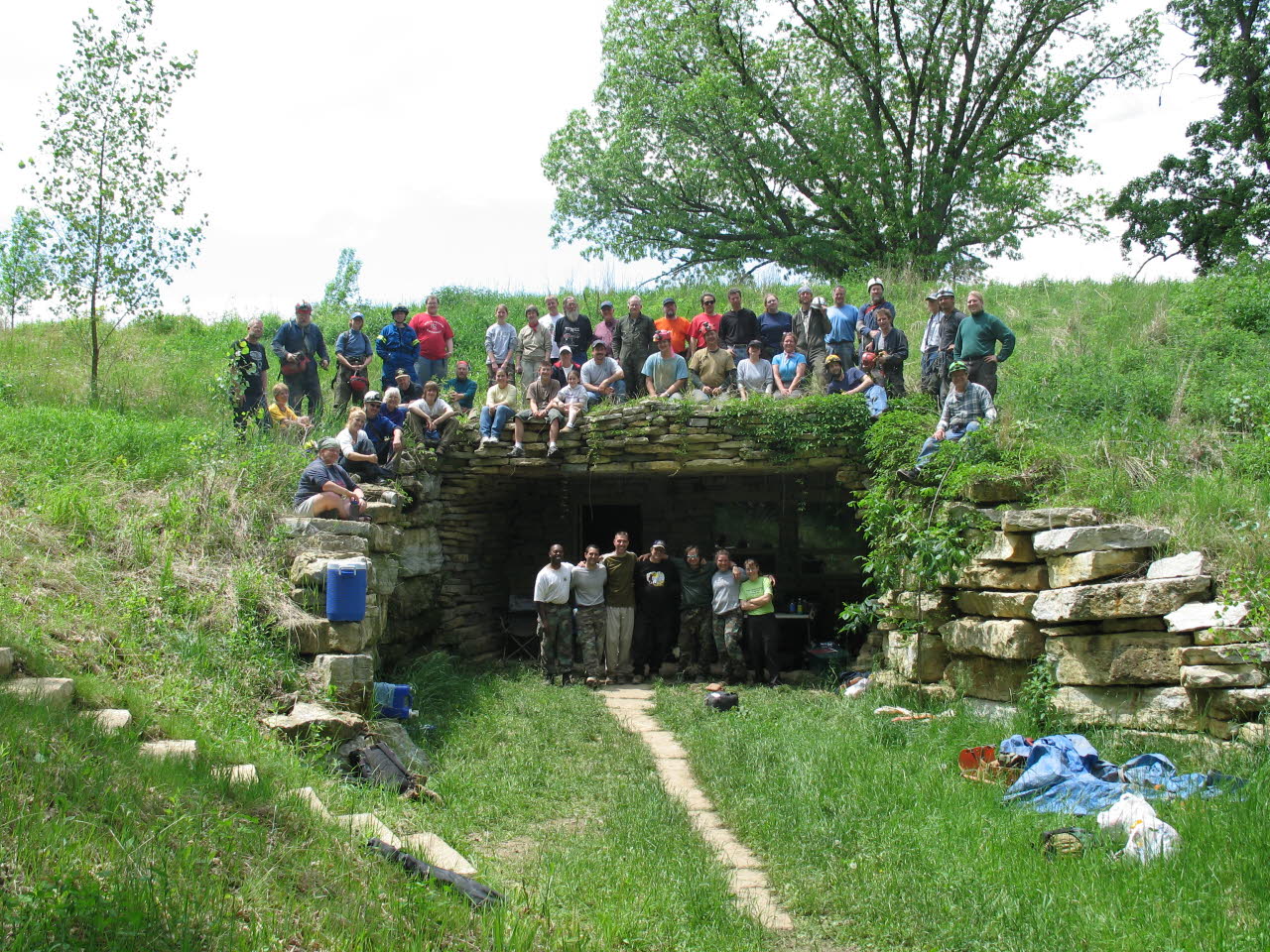 The entire site was backfilled. Native grasses and trees were planted. This building serves as a gathering place for nature groups, scientists and cavers before embarking on their underground journeys. |