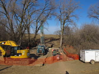 Native grasses, shrubs and trees were planted. The local Soil and Water Conservation Dept. began taking their constituents to the above and below ground site for a graphic demonstration on the relationship between surface and subsurface. |