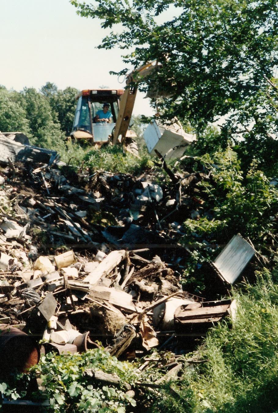 This was an daunting project, but work began by hiring a backhoe service to remove large items. |