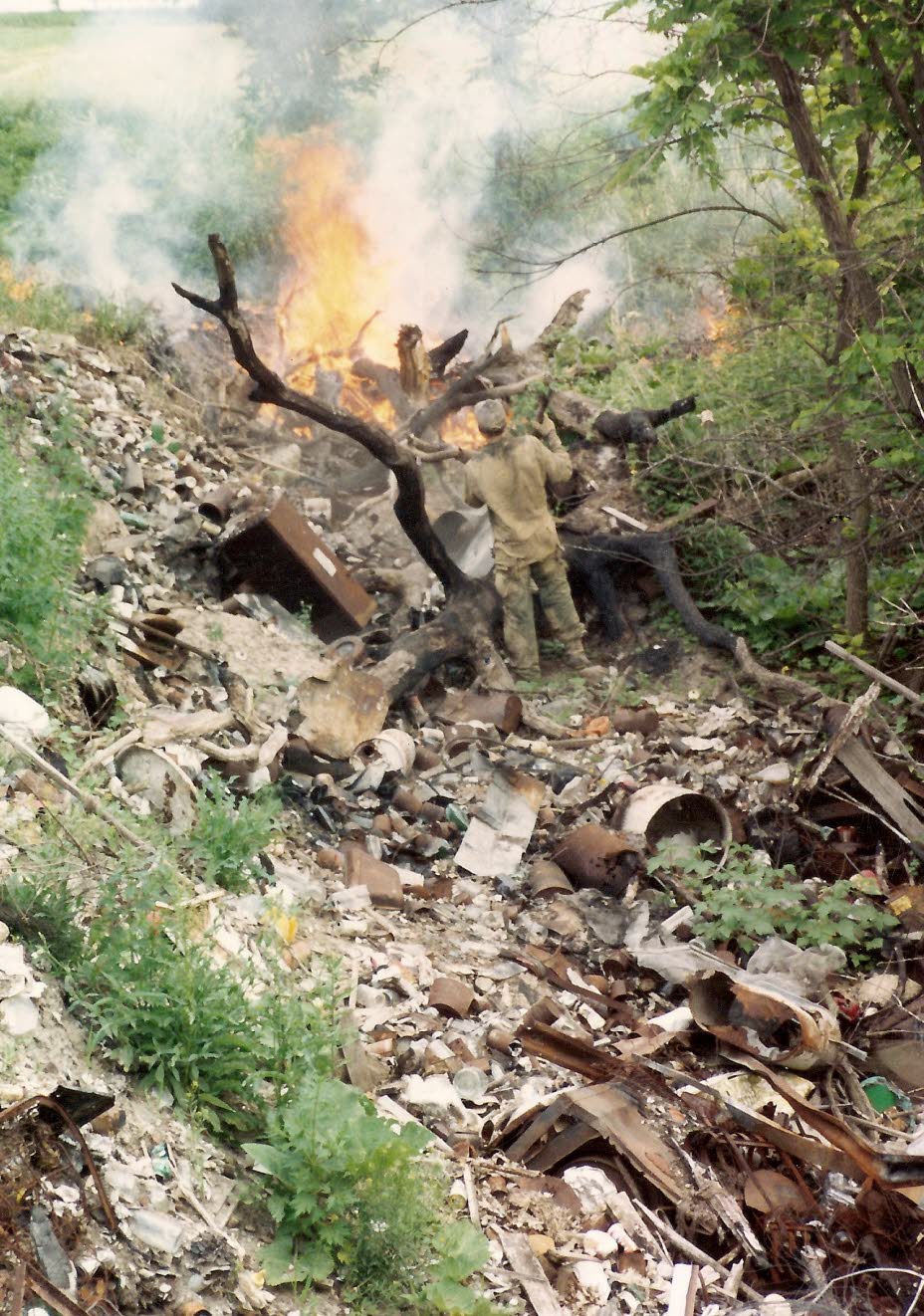 Wood debris was burned and trash was placed in assorted containers for recycling. |