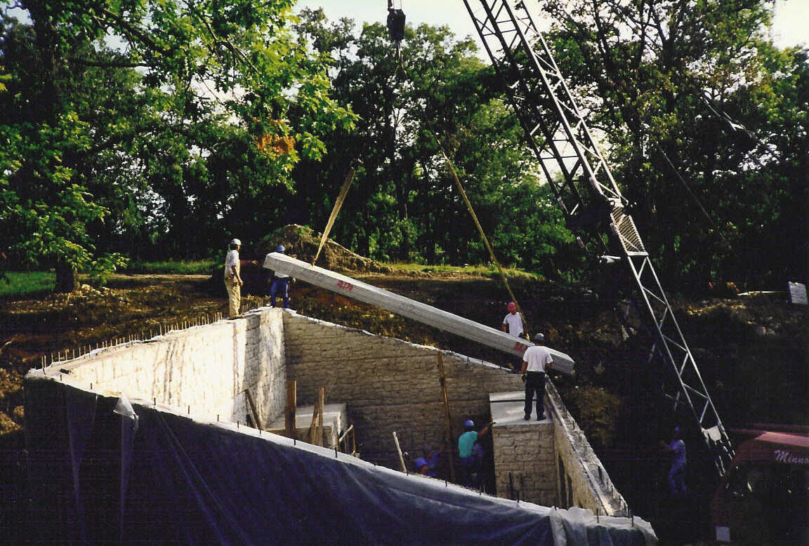Pre-stressed concrete roof panels were installed. The roof will be underground upon completion of the project. |