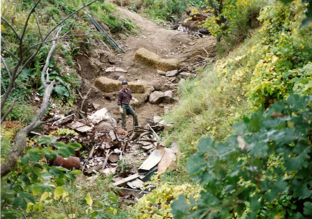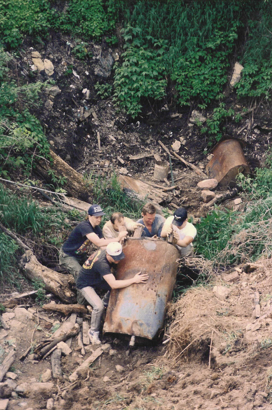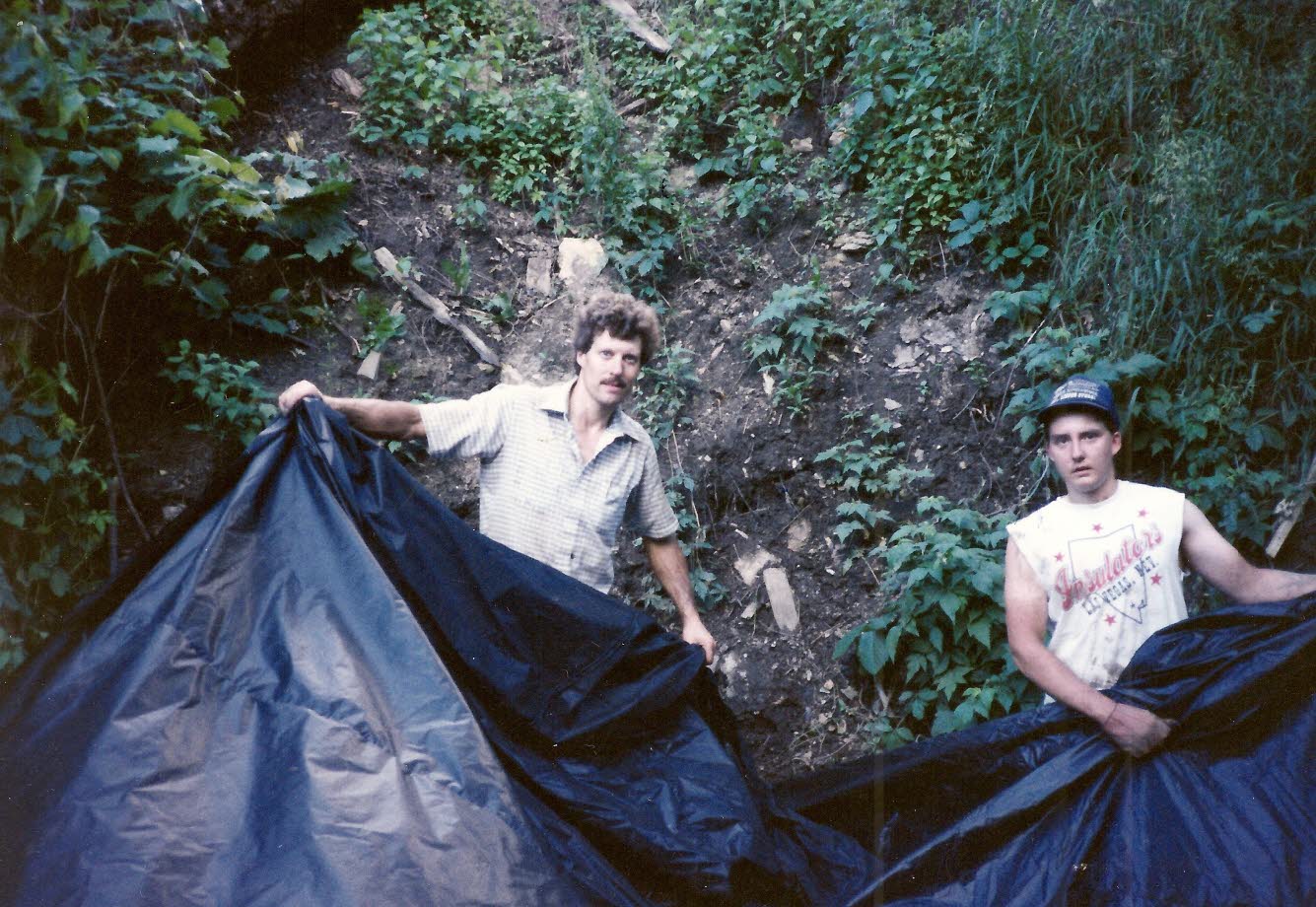 In 1991 it was decided to restore this huge trash filled sinkhole located on the Cave Farm. Since the 1800’s it served as a private dump for the landowners. |