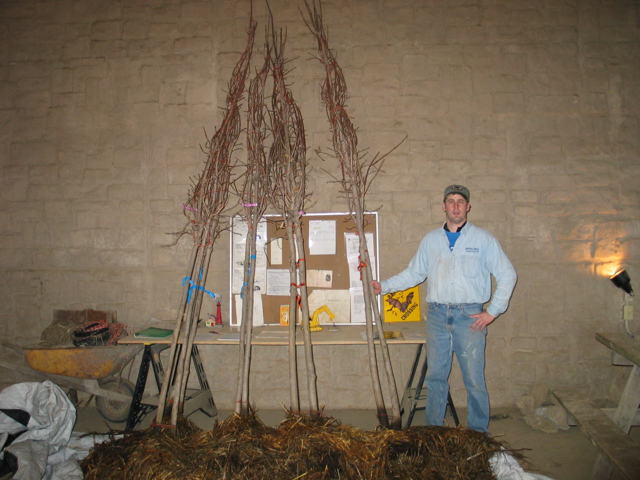 Phil Gemuenden prepares to plant hardwood trees on the Cave Farm. Over 100 trees of various species have been planted on the Cave Farm to jump start restoration in overgrazed areas. |