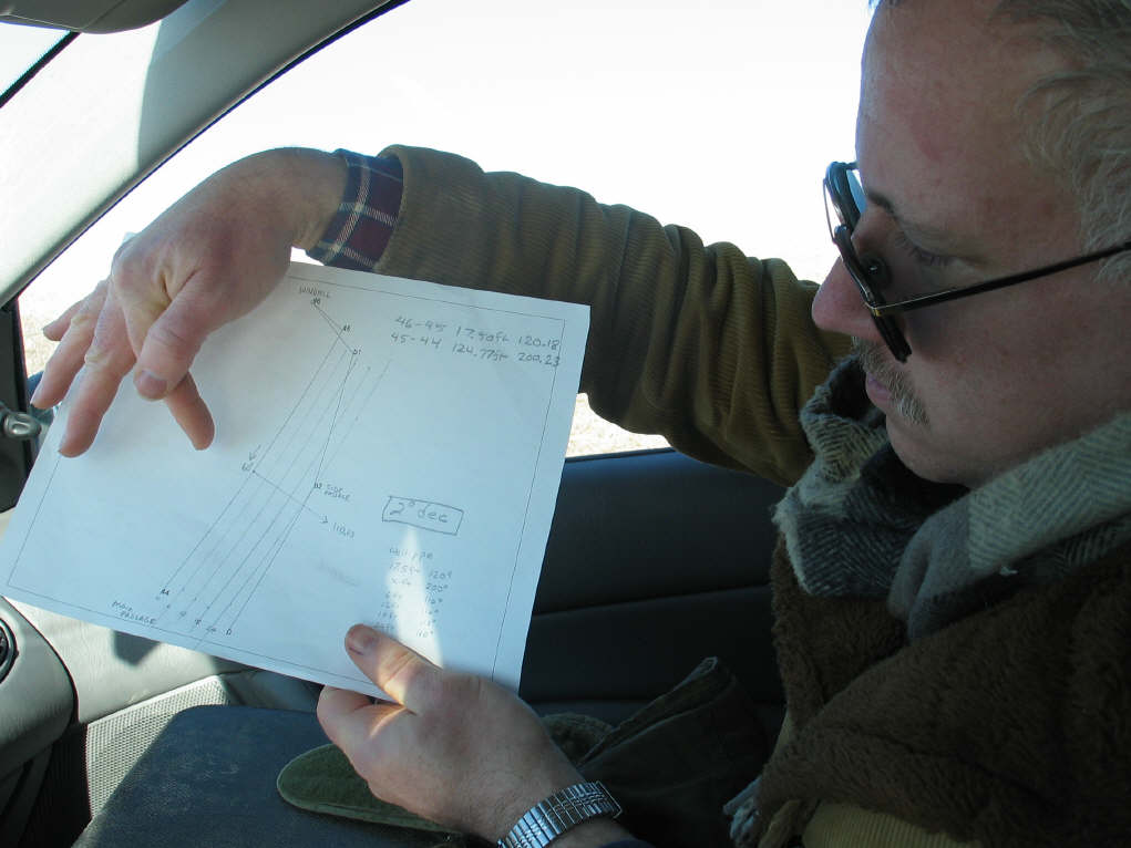 Dave Gerboth compares the original government survey with the survey plotted by the original discoverers. Combined with the current declination, he calculated where the new shaft should be drilled. |